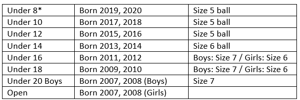 Age groups for the upcoming 2026 Winter season are based on the following birth years: